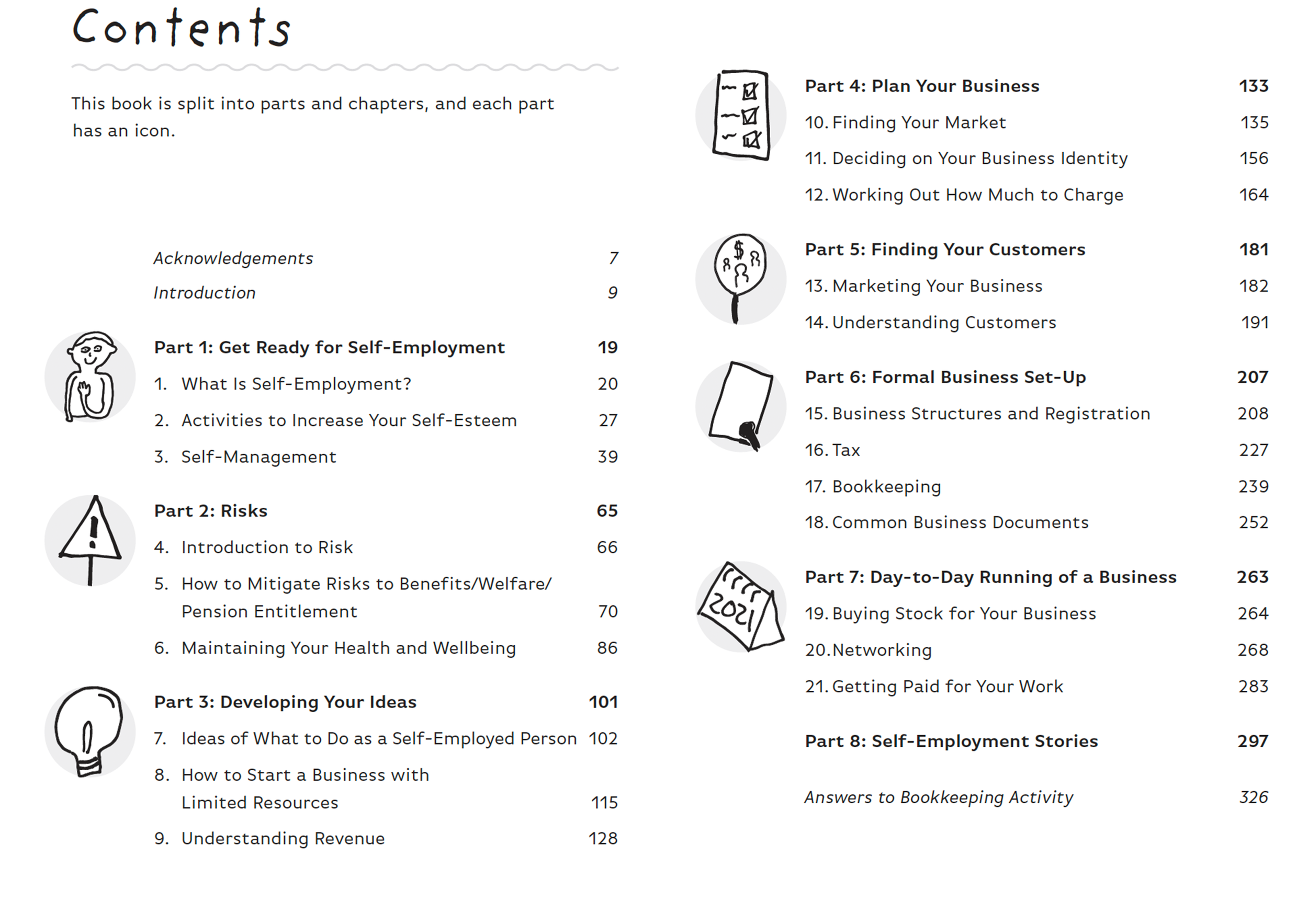 The book has a lot of activities to help you break down into manageable tasks to help you think about self employment in a practical way.